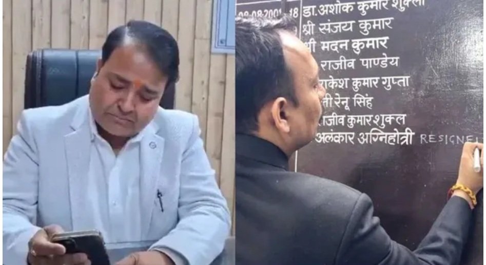 - अग्निहोत्री ने अपने कार्यालय में अपने ही नाम के आगे ‘RESIGNED’ शब्द लिखा और साथ ही एक पोस्टर भी दिखाया, जिसमें भाजपा विरोधी नारे लिखे थे।