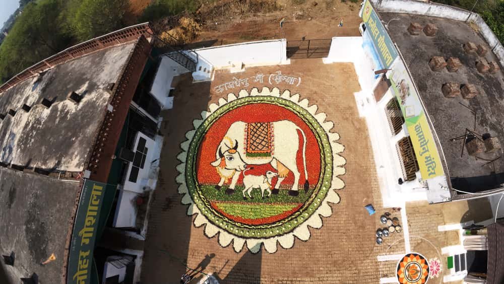 रायपुर/खैरागढ़। दीपोत्सव के पावन अवसर पर खैरागढ़ स्थित मनोहर गौशाला ने एक बार फिर इतिहास रच दिया है। यहां 2700 किलो फलों, सब्जियों और सूखे मेवों से बनी अद्भुत “कामधेनु रंगोली” ने गोल्डन बुक ऑफ वर्ल्ड रिकॉर्ड्स में अपना नाम दर्ज कराया है। यह मनोहर गौशाला का लगातार छठवाँ विश्व रिकॉर्ड है, जो गौ सेवा, पर्यावरण संरक्षण और भारतीय संस्कृति के प्रति उसकी अटूट निष्ठा को दर्शाता है।