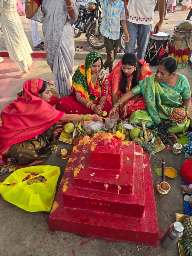 छठ पूजा के लिए दउरा उठा व्रती लोग घाट तक पहुंचे । जिसमें एक नारियल, पांच प्रकार के फल और अन्य पूजन सामग्री रखी जाती है। इसे घर का सदस्य सिर पर रखकर घाट तक श्रद्धा से ले जाता है।आस्था, अनुशासन और भक्ति का यह संगम एक बार फिर रायपुर की धरती पर दिखाई दिया, जहां छठी मैया के जयघोष और सूर्य स्तुति से पूरा माहौल भक्तिमय बन गया।
