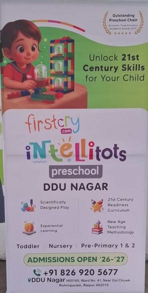 रायपुर।डीडी नगर स्थित FirstCry Intellitots Preschool द्वारा 26 फरवरी 2026 को वार्षिक उत्सव का आयोजन किया जाएगा। यह कार्यक्रम शाम 5 बजे से रात 8 बजे तक समता कॉलोनी स्थित MAIC College परिसर में आयोजित होगा।विद्यालय की डायरेक्टर शिप्रा चौहान एवम प्राचार्या माया श्रीवास्तव ने सभी मीडिया बंधुओं को कार्यक्रम में सादर आमंत्रित किया है।
