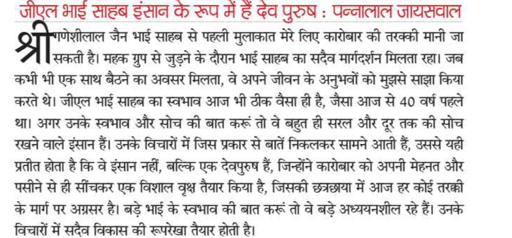-Humble tribute ofvyavasaykhabar.comfamily to Chairman of Mahak Group and industrialist GL Jain ji.
