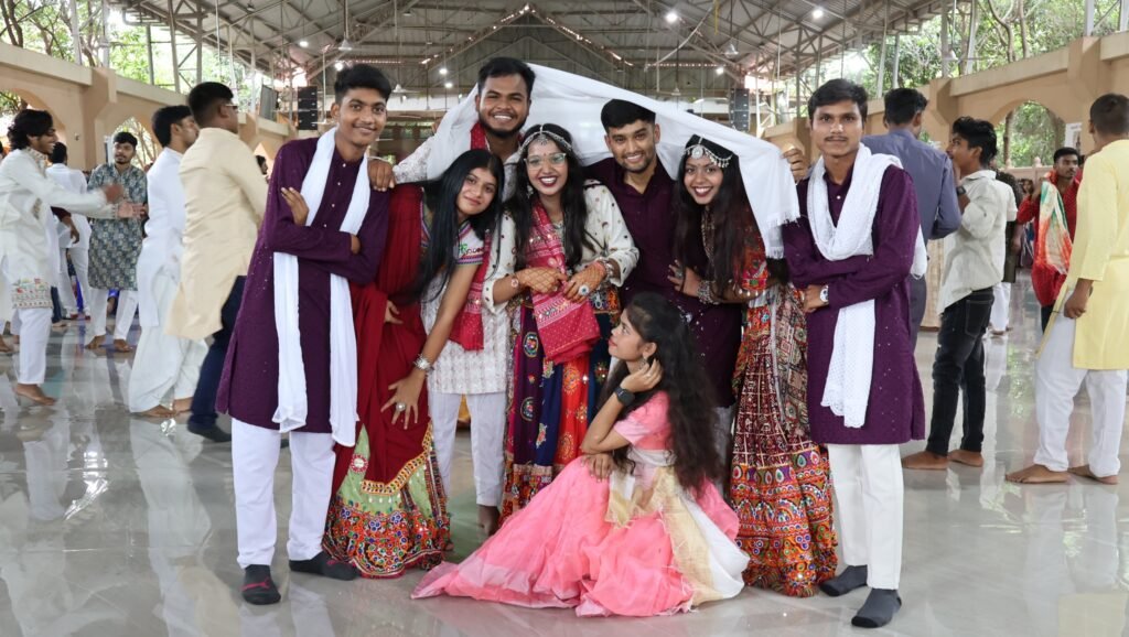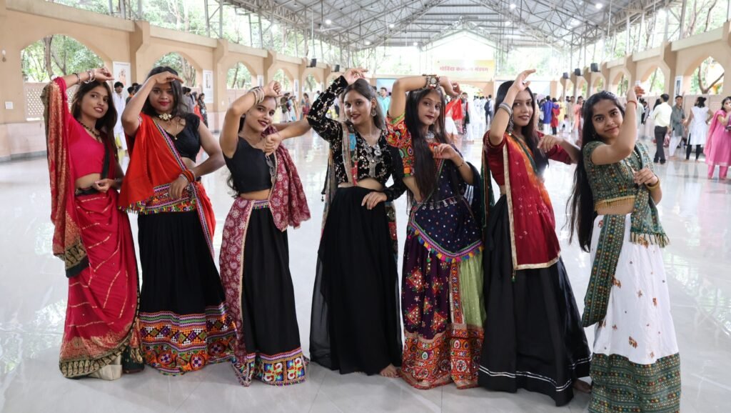 इसके पश्चात शुरू हुआ उत्सव का मुख्य आकर्षण – दो-ताली और तीन-ताली गरबा। विद्यार्थी और स्टाफ पारंपरिक वेशभूषा में गोल घेरे में नृत्य करते हुए गरबा की धुनों पर थिरकते नजर आए।