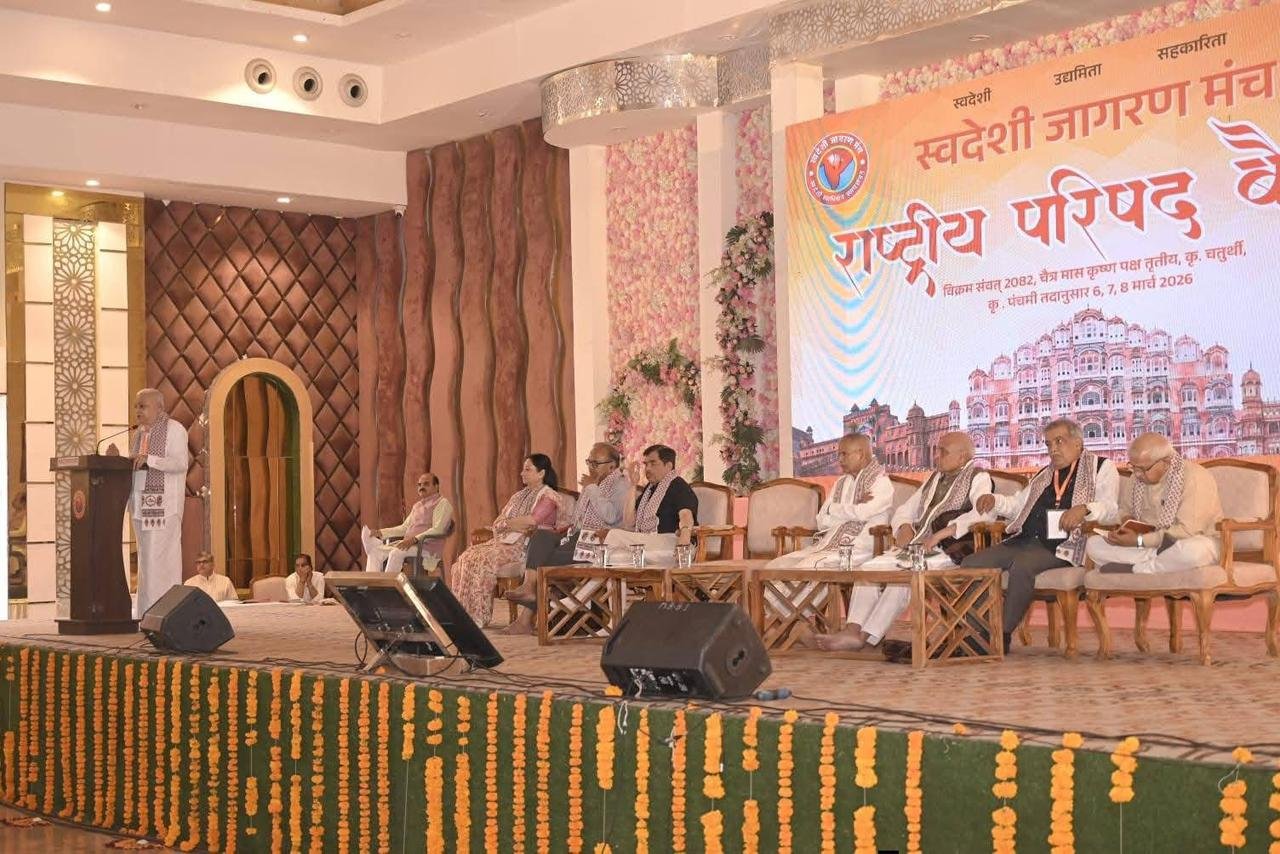जयपुर, 8 मार्च। ऐतिहासिक नगरी जयपुर में 7 और 8 मार्च को स्वदेशी जागरण मंच की दो दिवसीय राष्ट्रीय परिषद बैठक संपन्न हुई। बैठक में देशभर के विभिन्न प्रांतों से आए कार्यकर्ताओं और विभिन्न संगठनों के प्रतिनिधियों ने भाग लिया तथा स्वदेशी, आर्थिक नीतियों और उभरती तकनीकों से जुड़े मुद्दों पर व्यापक चर्चा की।